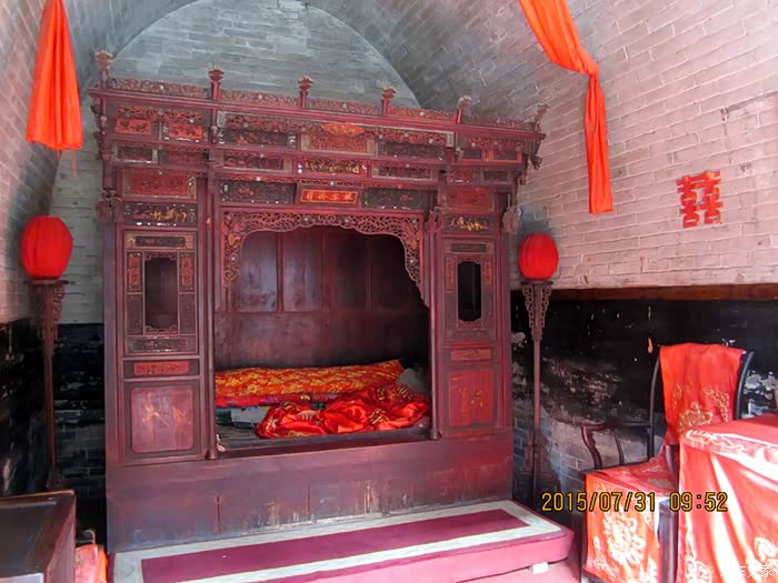 在王家大院里还珍藏着两件稀世之宝。一是清光绪年间慈禧西逃时留在王家的一张组合式红木雕花“龙凤床”。如果导游不介绍,可能就错过了。