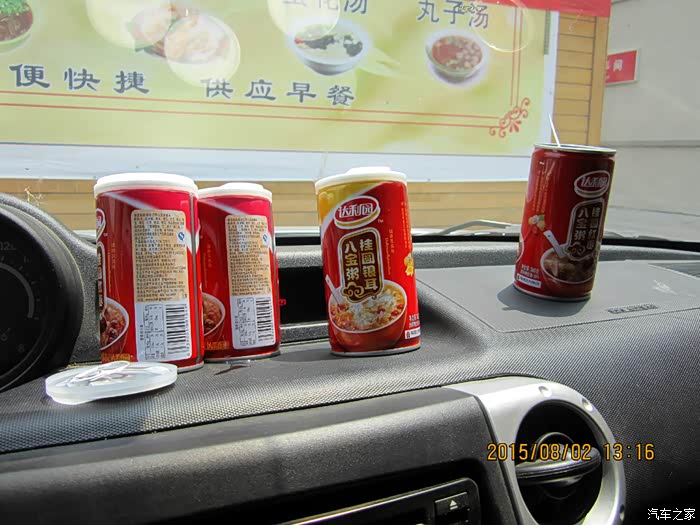 中午在铜川北服务区里,简单地买来几个八宝粥罐头和樊家腊汁肉夹馍当午饭,