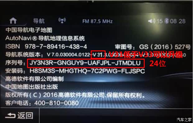 进入导航,把之前的v33序列号和激活码输进去。看到地图界面,就证明升级激活成功了
