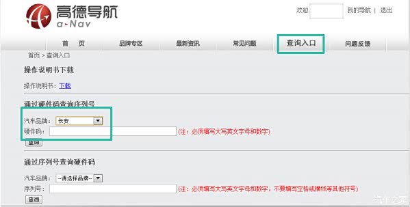 注意,如果没有拍照,对激活信息不清楚的话,可以从首页点击查询入口选择长安汽车品牌,输入硬件码进行查询