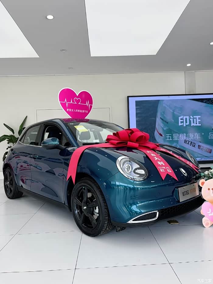 看到实车和网图还是很不一样的,这款复古绿好猫外观材质看着很有质感,车型比我家的油车要小一些,应该能更好操控一点。