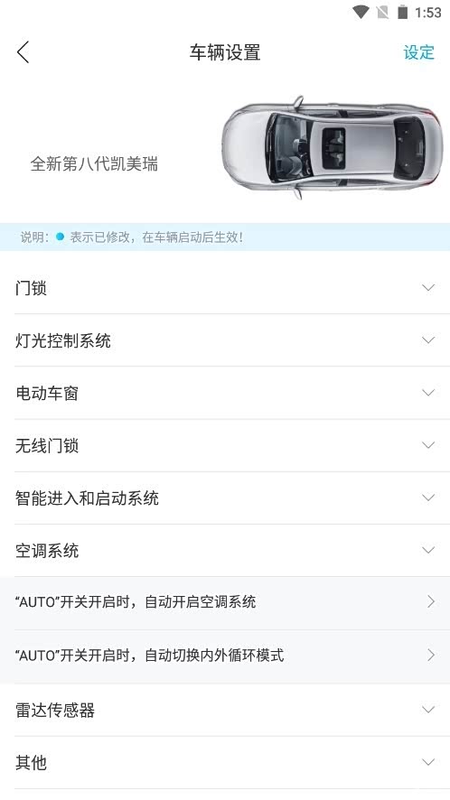 凯美瑞可以刷的隐藏功能1.倒车时,右侧反光镜自动下调。2.驻车通风加热系统。3.修正油耗计算。4.安全带报警5.胎压监测6.改装开关自动大灯。7.开机画面RS8.可以打开脚底灯,调节亮度。9.经济驾驶模式,显示当前实时消耗油量,做出统计,比如空调等等10.雾灯辅助转向11.高速刹车双闪12.LED灯亮度调整,建议设置50%-70%左右。