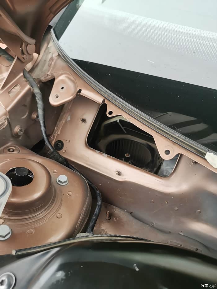 再拆,并对前挡风玻璃两侧、空调进气口、出水口、及涉及的螺丝、缝隙等全部打了密封胶,回装,经过数次的试水、下雨查看,还是漏水!!!