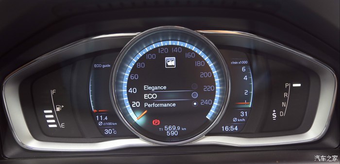 在低配的新四缸发动机车型,标配了ECO驾驶模式,在该模式启动驾驶一段时间后,在 仪表盘的左边会显示一个”e“字,表示车主驾驶习惯很好,用ECO节能模式的表现。