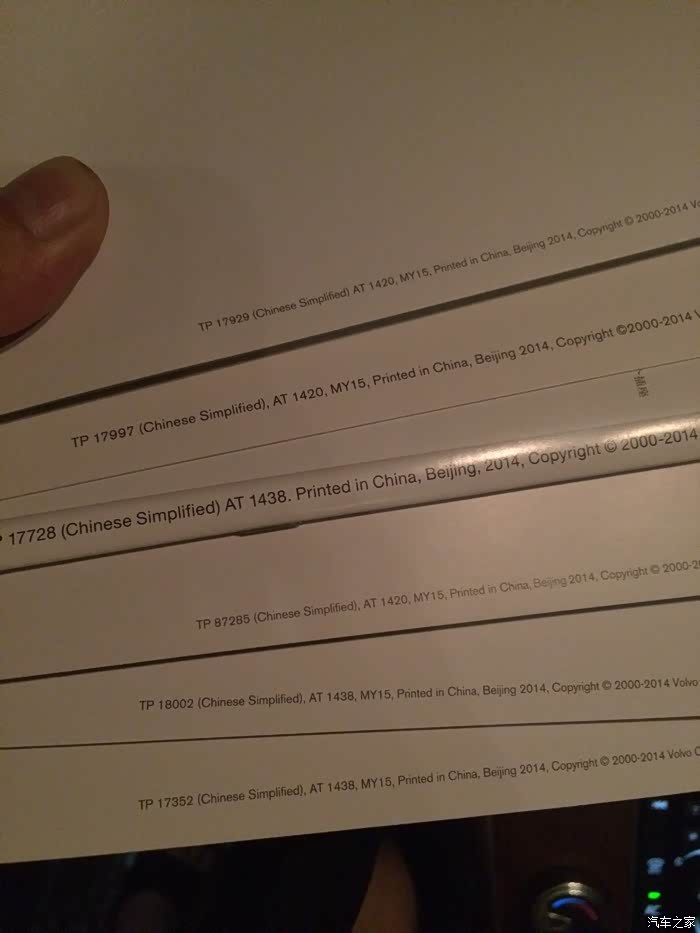 2、在你的车里拿出随车手册,在手册背面的最下面有一行小字,其中有几个字母是AT1428(或者是其他数字),记下来。
