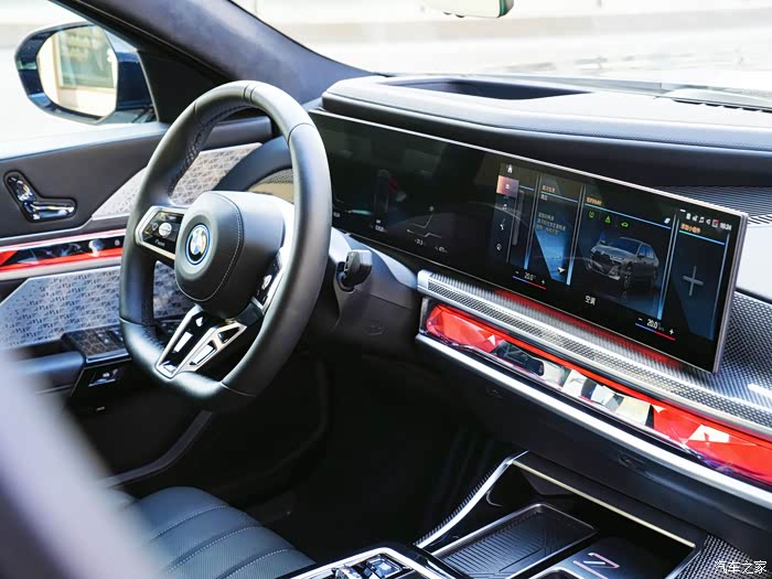 在油车里,宝马最引以为傲的就是操控。为了传承这一优势,在第五代BMW eDrive电驱系统的基础上,宝马i7还搭载了魔毯智能空气悬架系统、主动舒适防倾功能、电子防倾杆等创新配置。在这些配置的加持下,每一次过弯,i7稳健轻松的操控质感都让我印象深刻,即便路面不太平稳时,我感觉舒适性比我的S还要好一些呢。