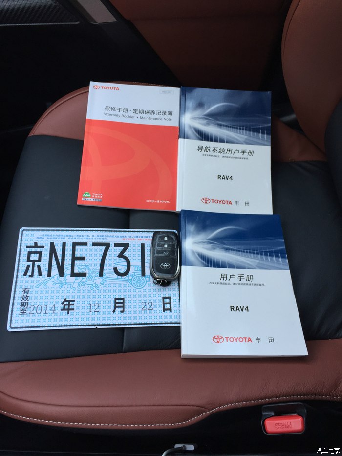 逛了一圈,该问的也都问了,该试驾的也都试驾了。总的来说,我和LP对RAV4的印象还是不错的,2.5的动力和其他2.0T的车型差不多。价格上也比较有优势,所以最后我和家里人商量一下,最后决定入手RAV42.5尊贵,颜色要橙色的(LP喜欢没辙啊)。后来去店里再砍价,谈到心里底线直接交订金。由于有现车,第二天一早我就去验车办手续上牌做装饰,下午的时候才把车提回家。下面让大家看看我的小R怎么样?哈哈