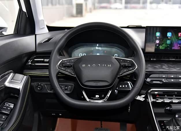 再来看内饰座椅采用了环抱式设计,坐上去舒适感十足,特别放松,黑色的座椅采用的是红色的走线看上去充满活力。多功能方向盘上面也有宝骏的字母标示,超大的显示屏下是贯穿式的出风口,看上去也是非常具有科技感,据销售小哥介绍出风口是普通车的好几倍!钢琴按键即好看又实用,及推动式设计的档位,无一不在说着它的独特设计。