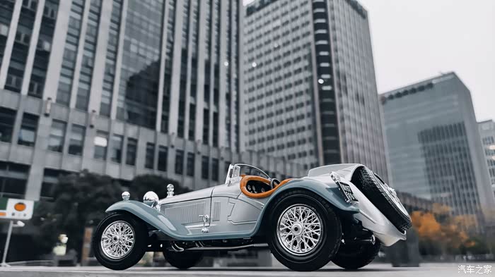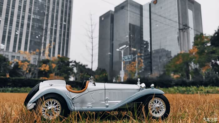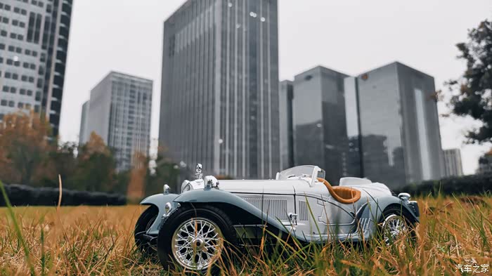 所以为了和这款满载历史厚重感的车型形成强烈反差,我选取了繁华城市金融街的高楼大厦做背景,让现代化的气息和古典的历史强烈冲突起来,达成充满张力的视觉效果。