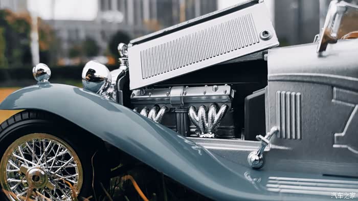 这台车是1:18的阿尔法罗密欧8C系列,这个“8C”的“8”代表着直列8缸发动机。要说到8C的历史,第一代8C可追溯到1931年,当时势单力薄的阿尔法·罗密欧对赛道觊觎已久,随后它找来了以技术流著称的法拉利,试图以强强联手之势来统治各大赛场。事实上,双方潜心研发的秘密武器正是8C 2300,得益于2.3L直列八缸发动机强劲的动力和法拉利出色的底盘调校,它曾四次连续制霸勒芒24小时耐力赛。
