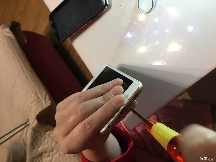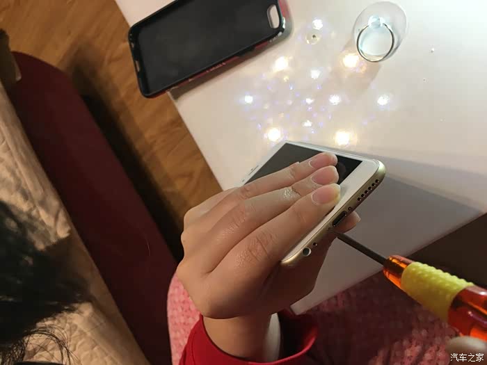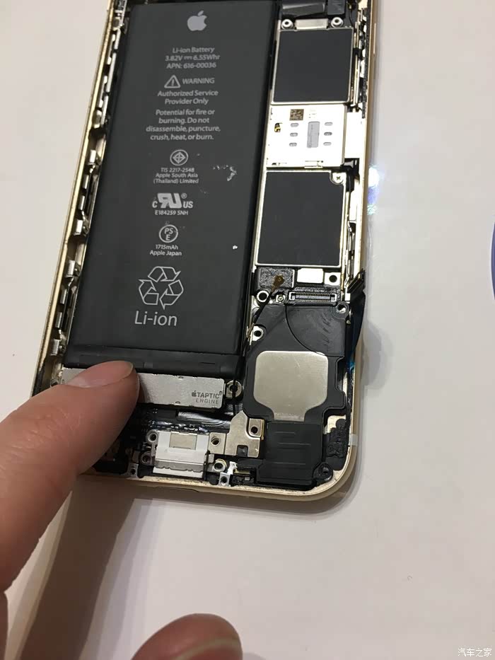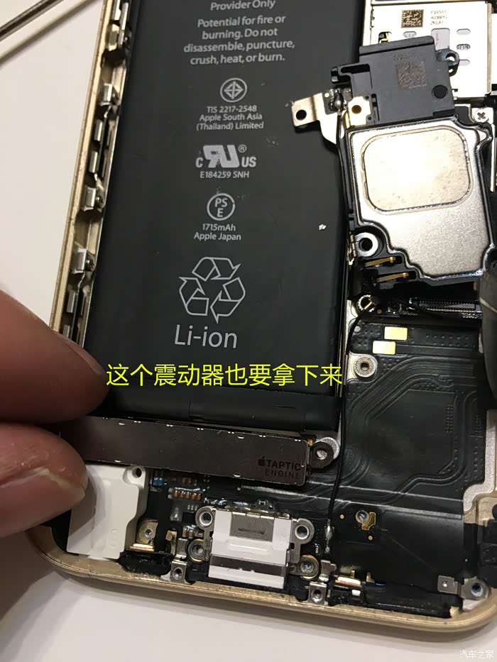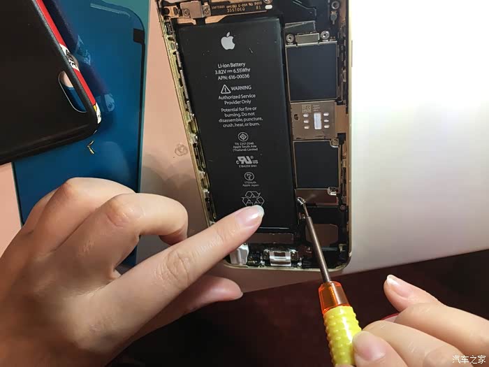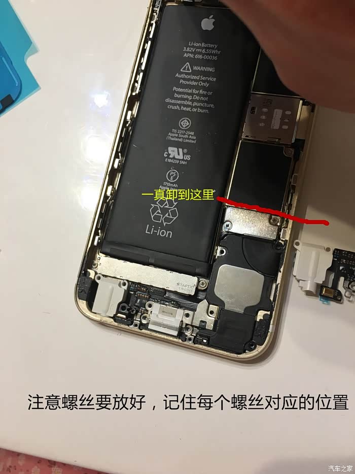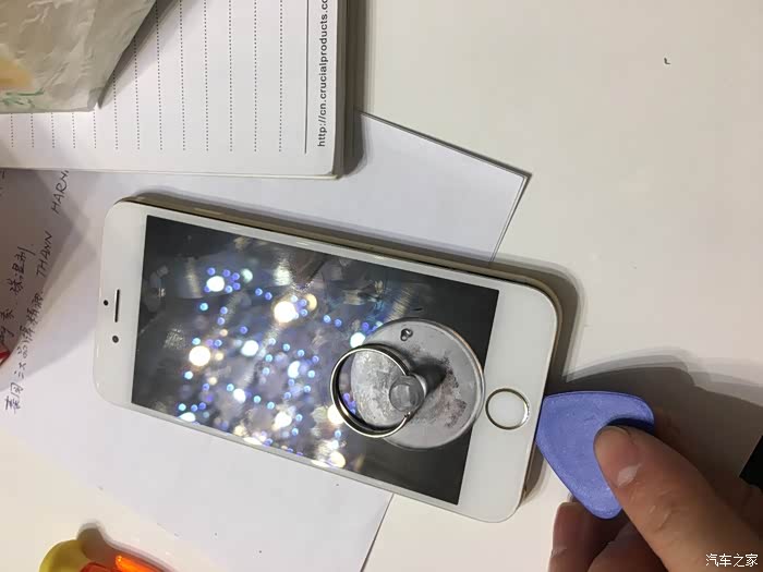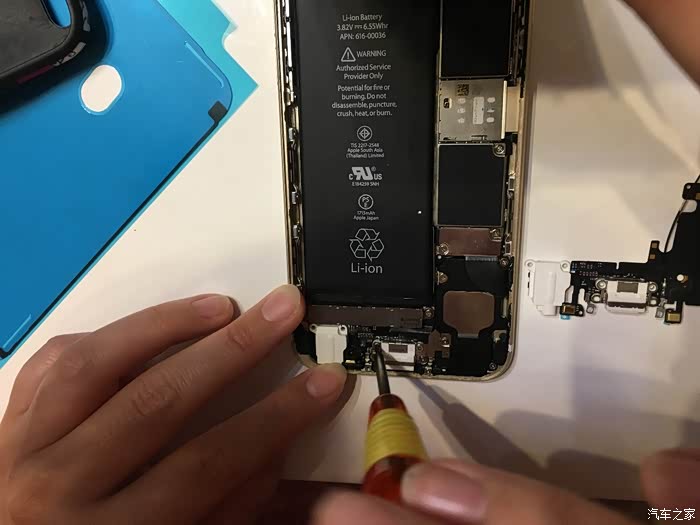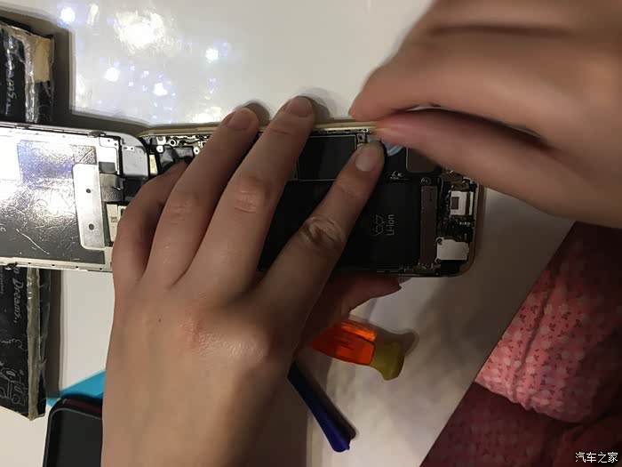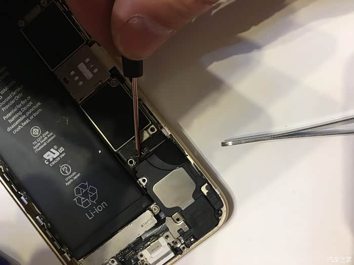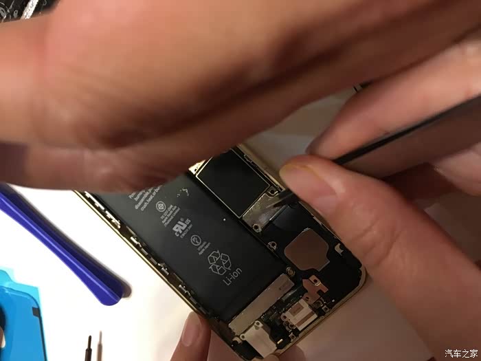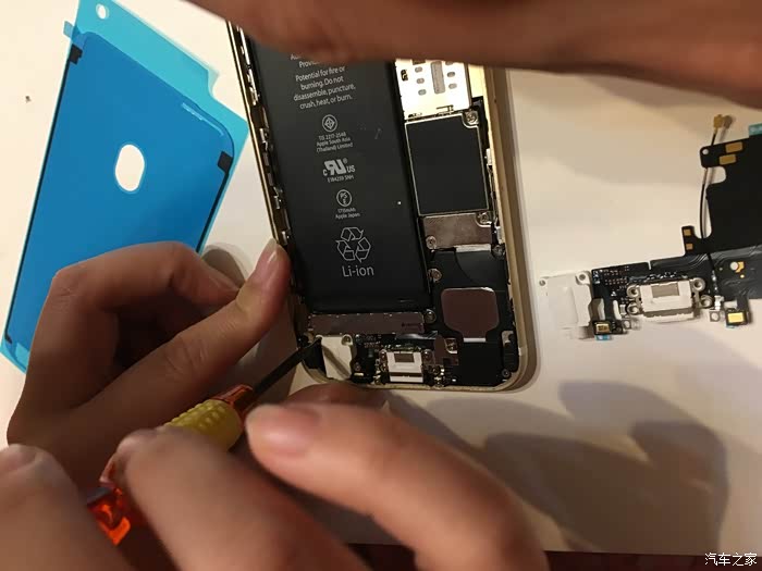 这里需要注意一下,这个6S不需要太注意,我当时的5S的HOME键和主板之间有连接线,如果只用吸盘拉开屏幕,在屏幕脱开的瞬间力量收不住连接线就会被拉断,我的5S就悲剧了,所以一定要用拨片撬!!