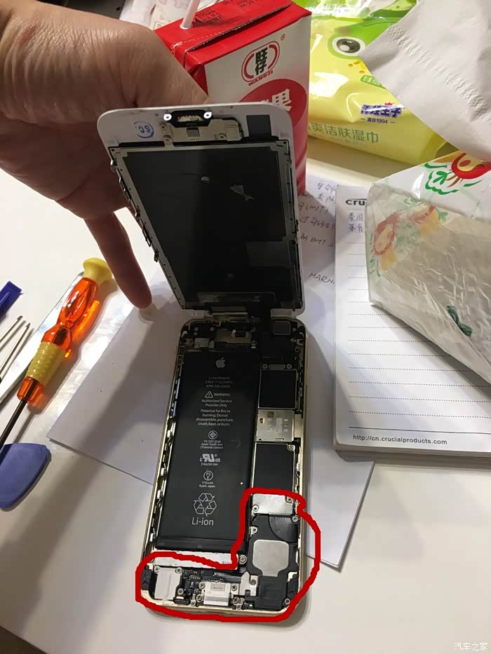 说到iphone的尾插,上面集成的东西还是挺多的,貌似出问题的朋友也是挺多的,上面集成了耳机孔、送话器(话筒)、数据口、喇叭、天线。我曾经换过一次iphone5s的尾插,当时因为充电经常接触不良,还以为是手机的数据线的问题呢,可是媳妇的手机用了就没问题,最后确定是尾插的问题。