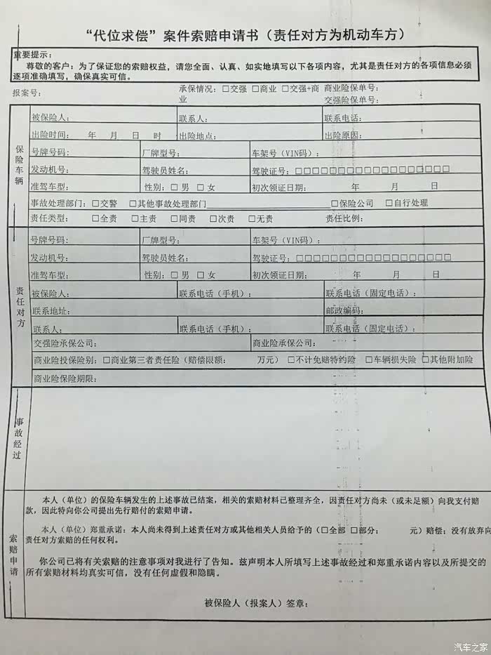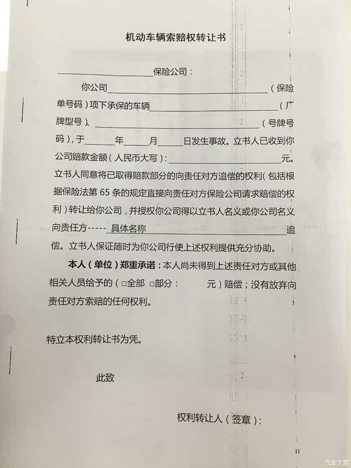 7月10日,文子去事故中队想让交警开一下40号文件证明(我在保险公司看过交警一大队和九大队开具的这个证明,大体内容就是全责方不配合理赔)。交警说那个文件并没有规定必须由交警开具这个证明为由拒绝了我的要求。 那么文子就只能按照第二种理赔方案——代位赔偿 进行理赔了。上午找交警提供的对方的行驶证复印件,驾驶证复印件,交强险复印件。下午带上自己的驾驶证原件,行驶证原件,交强险原件,身份证原件,银行卡等,被保险本人去自己保险公司的理赔专柜去提交材料。让自己保险公司的定损员进行定损(文子的车因为定损后开了发票,车子也在 4s稍微处理。所以只能去平安调取定损报告和图片,并让定损员签字)。我的保险公司经过定损审批,会对先行赔付,然后法务部会按照规定进行追偿。
