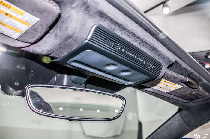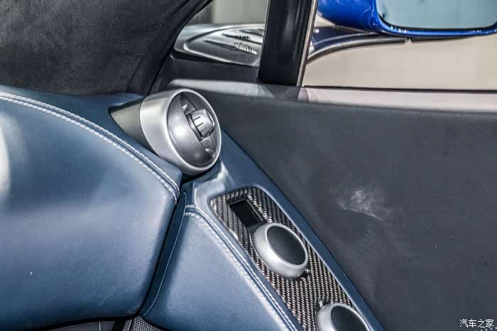 可以看到,A柱、车顶都大量使用了Alcantara(欧缔兰)材质,中控上面也是完全的真皮包裹着,手感与普通车的皮质有着天壤之别,总之就是无处不透露着壕气的气息~