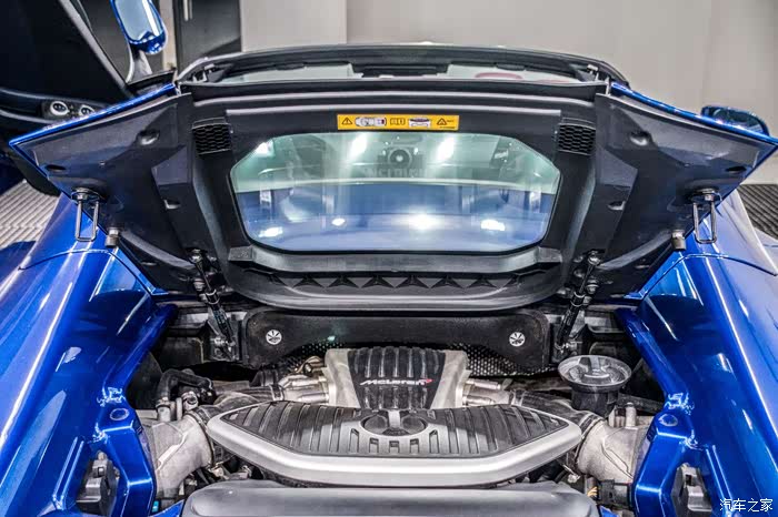 大家可以很明显的看到这台车上到处都是晃眼的空气动力学套件,比如车身两侧的双进气口和可以升降的尾翼,这些不仅是为了在视觉上提供冲击力,更是为了在赛道驾驶时提供足够的冷却空气以及下压力,尾翼在高速重踩刹车的情况下能给升起并产生Air-Brake(空气制动)的效果,为激烈驾驶提供可靠的保障。
