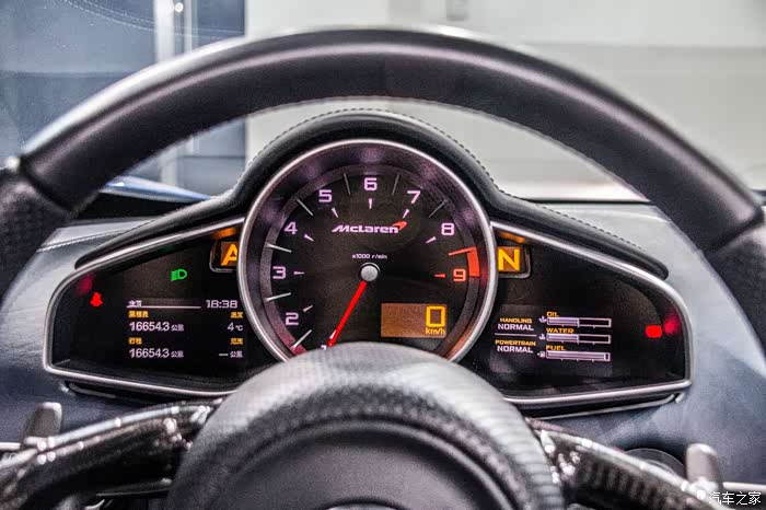 MP4-12C全系都是搭配倍耐力P ZERO轮胎,此外还可选装标配于迈凯轮P1上的、属于半热熔道路竞技型轮胎的P ZERO CORSA,不过车主为了顾及到日常驾驶,所以并没有选配为赛道而生的这款半热熔胎。此外,这款MP4没有将碳纤维陶瓷制动碟作为标准配置,标配为铸造铝合金-铸铁复合材料制动碟,不过这么大的打孔刹车盘在日常驾驶中完全可以满足刹车的需要了,若不是专门买这车下赛道的,的确没什么必要选装碳纤维刹车盘。然后这台车还搭载了一种黑科技,名为半自动制动辅助转向系统,简单地说,这套系统的作用就是通过对单个后轮施加制动力以减少转向不足,具体的专业解释我也无能为力了,总之就是成了当年的一种黑科技。