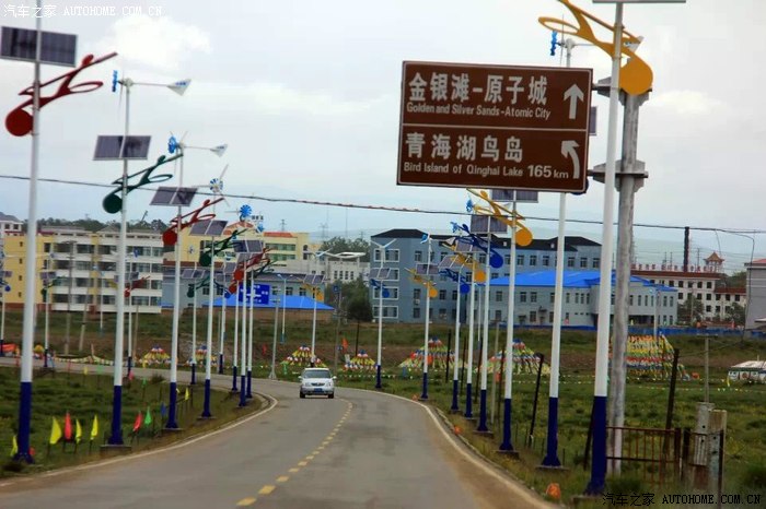 车出格尔木,夜来风沙过后的杨树,高大而瑟瑟的立于路边。黄沙碎石混杂的荒地上,散落着杂草。高速路平展而崭新,一望无涯地通向西宁方向。