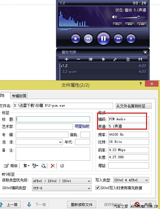 Foobar的属性比较怪,一个地方是显示PCM,一个地方显示是DTS。但是应该是DTS的,因为不转换确实放不出来