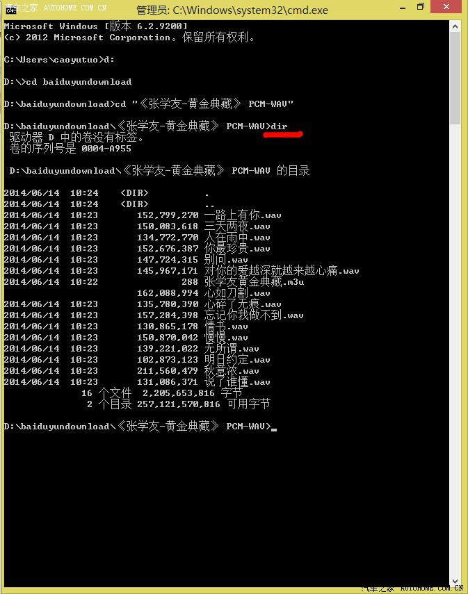如果参照上面的帖子,创建播放列表的时候要逐个将文件名写进文件里面,即使是复制粘贴也比较费事儿,我这里用一个简单的DOS命令就能省点事儿