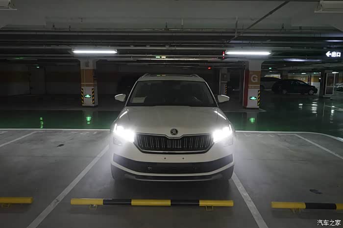 LED的大灯亮度很不错,地库里光线不好,画面较渣。