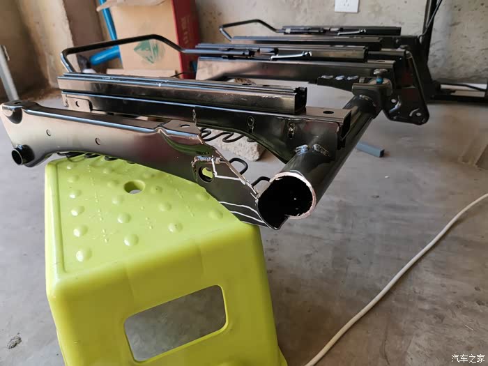 关于改装座椅,首先来说,强度绝对不如原厂,这个必须得承认,不管你怎么焊接都不如原厂的冷轧一体的,别看人家用料薄,但是轧弯后强度足够,而且拐圆角可有效消除应力集中。虽然做了加固,但也肯定不如原来座椅。不过还好,后排两侧安全带是链接车体和座椅座垫骨架的,与靠背没有作用力关系。只有中间一位三角上一个点位链接靠背。