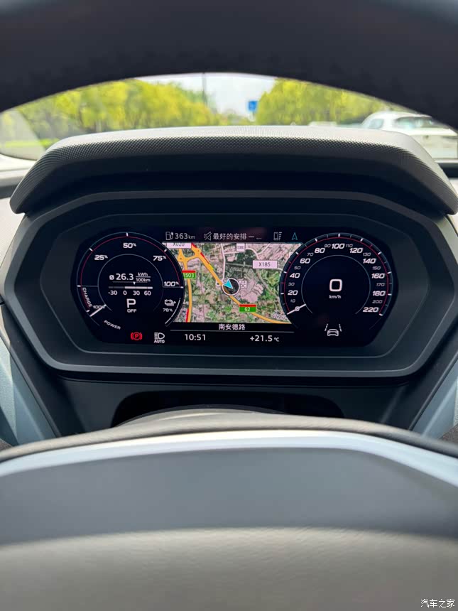 本次试驾车型为奥迪Q5 40e-tron 星耀型 锦衣套装,七座版本,纯电续航为560公里,电池容量为83.4度。