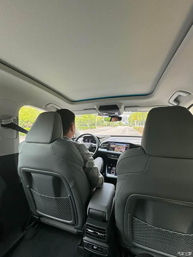 但是第二排座椅就显得有点小了,尤其是坐垫的长度偏短,不能很好的支撑大腿。第二排还支持座椅靠背和坐垫前后调节,可以调节到最舒适的乘坐状态,这个设计我觉得非常人性化,目前我看了竟品也就奇瑞的星纪元ET支持座椅前后调节,靠背也同样不支持。同时第二排座椅可以支持单座调节和放倒,每一个座椅都是独立存在的,其实这个成本挺高的,但是如果这个成本用在第二排电动调节上会不会更有吸引力?比手动座椅更显档次。由此可见,奥迪Q5 e-tron的第二排座椅调节还是很舒适的。