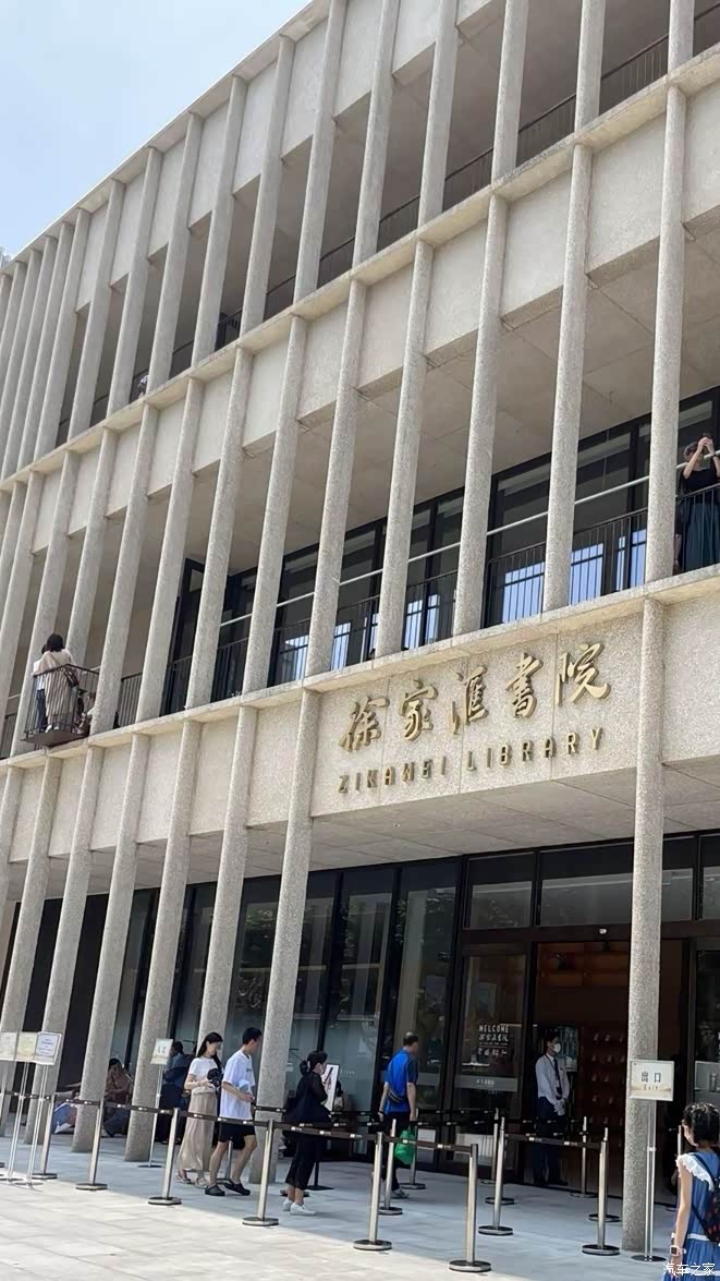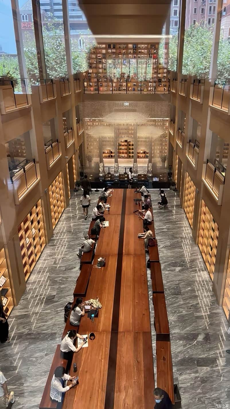 旁边的徐家汇书院是上海文艺新地标,外观简约大气,内部挑高厅、长木桌搭配艺术装置,既是阅读空间也是打卡胜地。