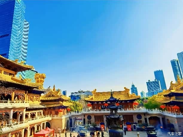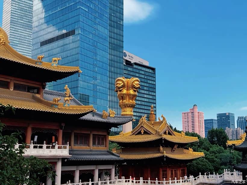 静安寺藏在商圈里,金灿灿的屋顶从写字楼间冒出来,细腻得像假的。