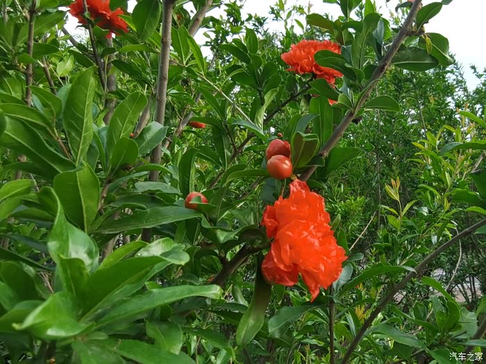 路旁的石榴也开花了,不太多,但颜色鲜艳。