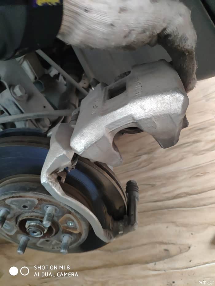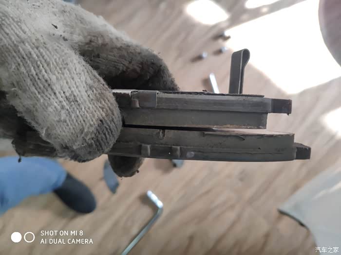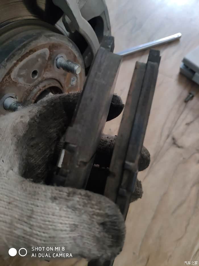 原厂的刹车片还有那么厚,不用可惜了!