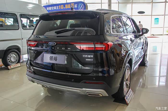 领裕的车尾整体线条简洁,造型敦实。光轨式一体贯穿尾灯带有动态光效,指向了中央的福特车标,是个很有技巧的设计细节。