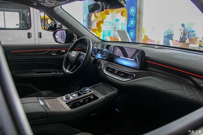 车内最吸引眼球的就是双12.3英寸的双联屏了,虽说现在双联屏已经不算新鲜事物了,不过这款车的双联屏似乎更长,搭配中控平直狭长的线条设计,更加协调耐看。