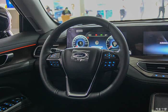 领裕的座舱采用环抱式设计,整体非常大气舒畅,有种豪华车的气场。仪表台层次感很强,不仅是结构和配色层面,还包括材质的运用,皮革、镀铬、木板依次排列,和谐共处。