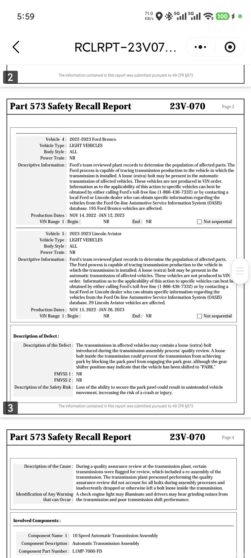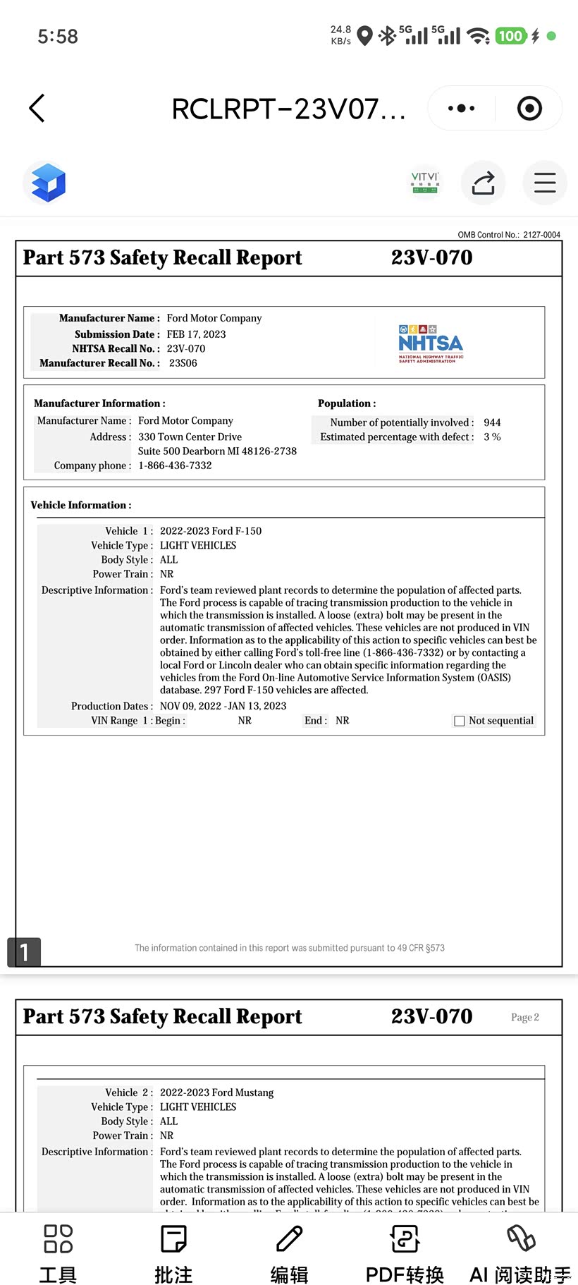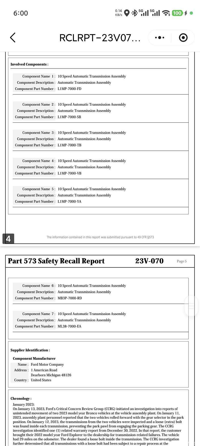 1. 长安福特公开承认10R80批次缺陷,启动全国召回!