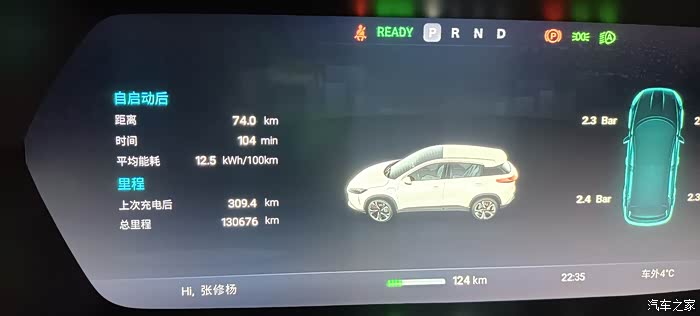 车外温度4度,冬天跑了310,还有124续航。也行吧。建议楼主好好跟售后沟通,或者打400投诉那家售后服务中心。
