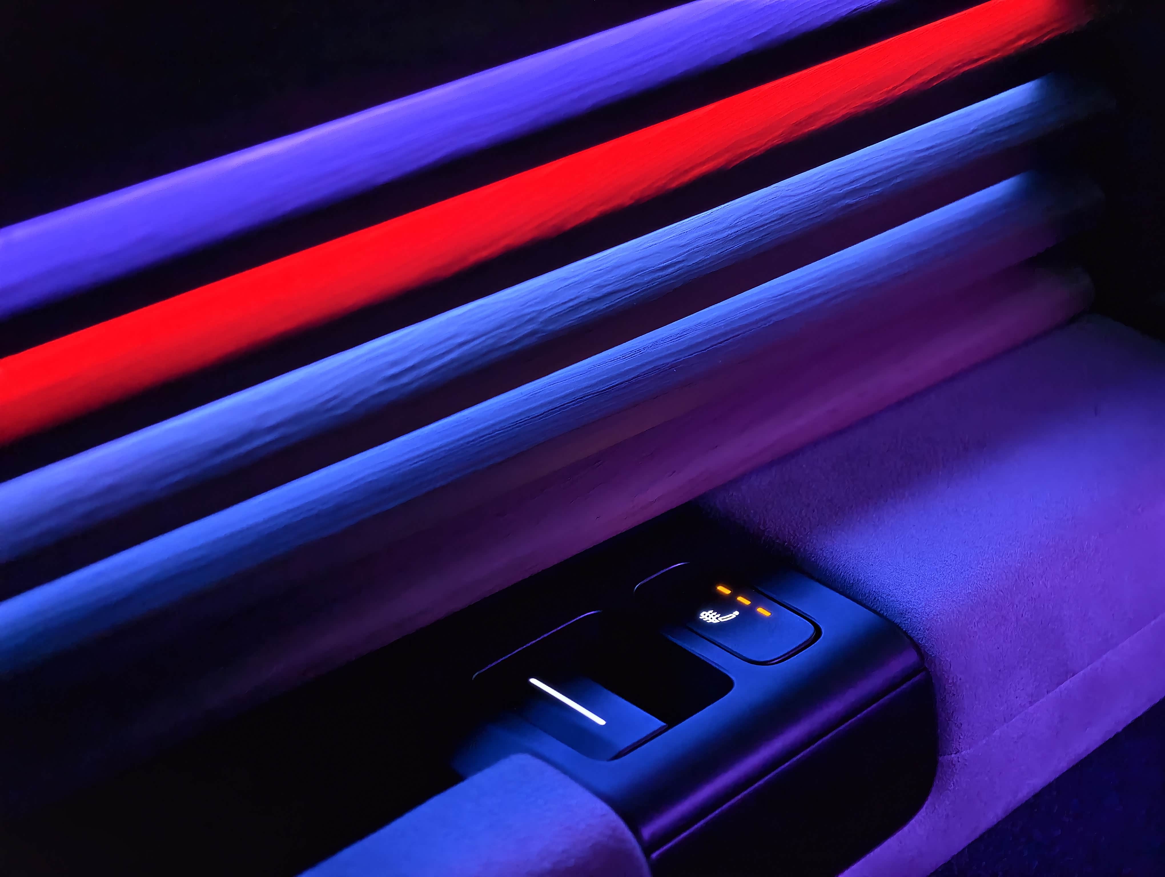 它这个氛围灯真的太赞了,你看不到灯带,但是氛围光却清晰出现在你的视野中,就像从木纹饰板中持续柔和的流散出来的一样,充满神秘感