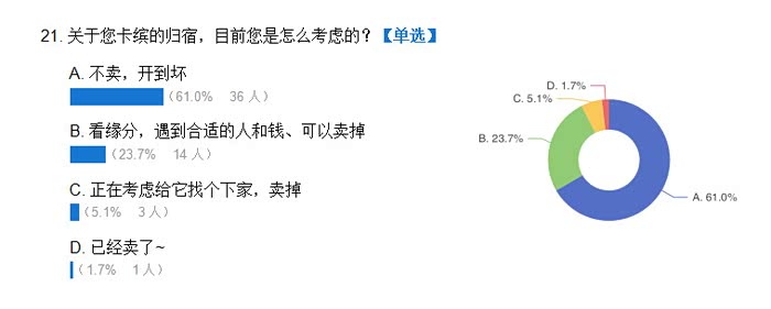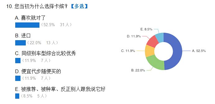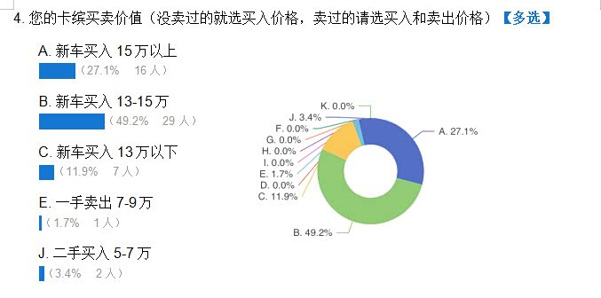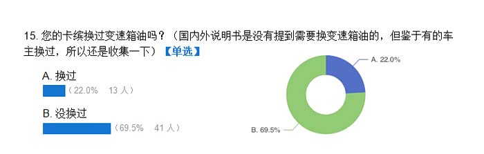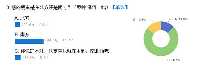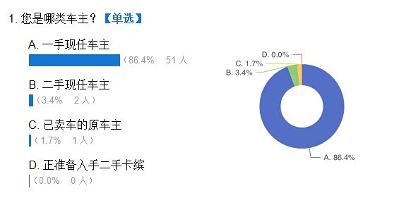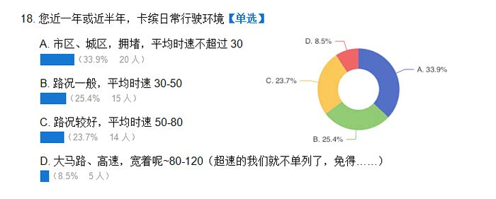 因我个人能力有限,另外加上问卷的功能不完善,所以这份问卷的逻辑不太缜密,另外人数太少,也不具备参考意义,但确实是群内车主真实参与。所以关于数据结果,仁者见仁智者见智吧。