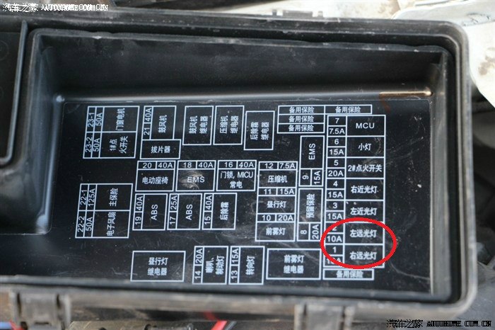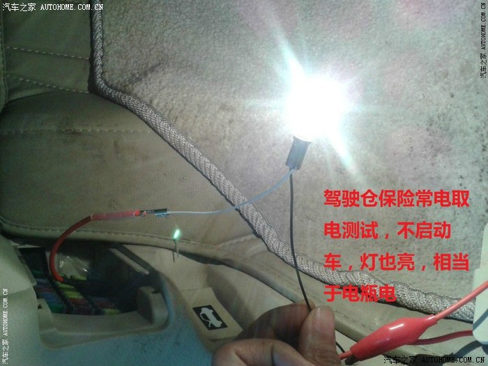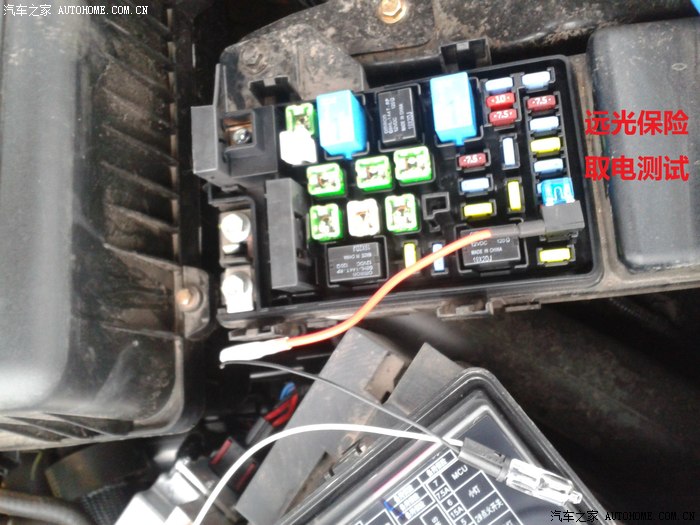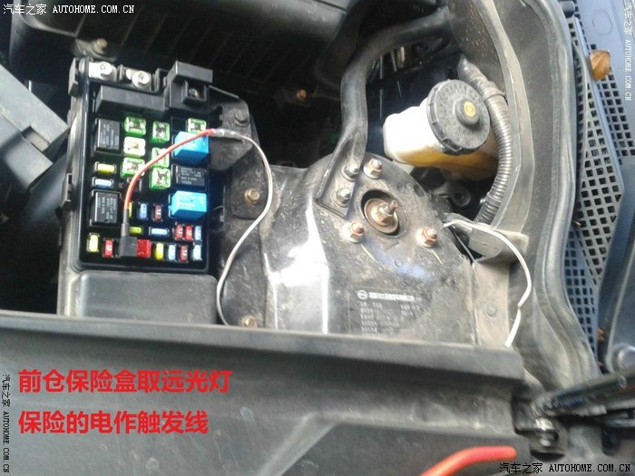 接远光灯保险为视频分割的开关触发线:左或右远光灯的保险随便取一个,左远光保险好插取电器些,就取左吧。