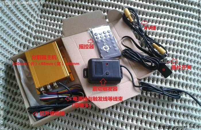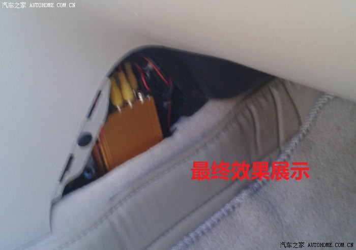 ⑨安装红外接收头和震动触发器:红外接收头夹在主驾右脚上方吧(加线管),震动触发器安在副驾手套箱背后左边旁就行了。