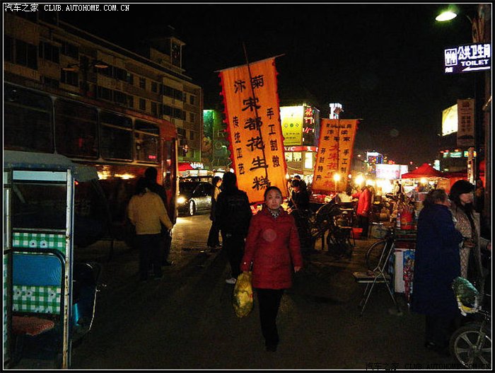 非常有名的鼓楼夜市,在青岛,夜市卖的是服装百货;在开封,夜市以小吃为主。
