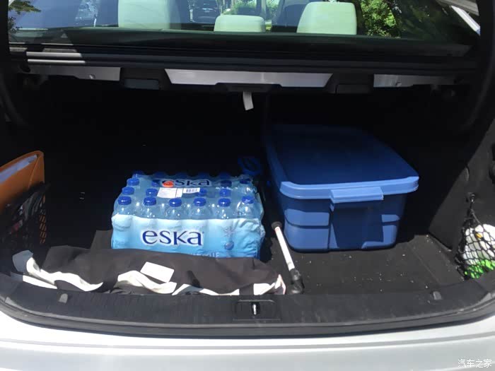 后备箱里的标准配置,一箱水,一箱洗车保养用品。空间没大到不可思议,但日常是足够了。