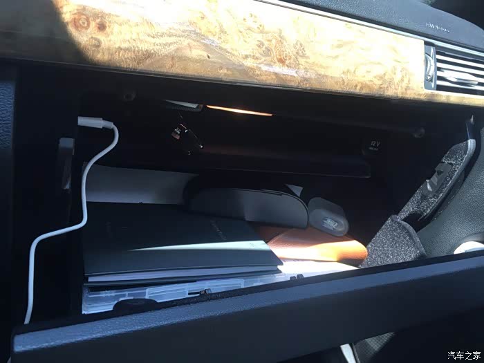 相对而言这个手套箱空间就一般了,那个白线是AUX线。