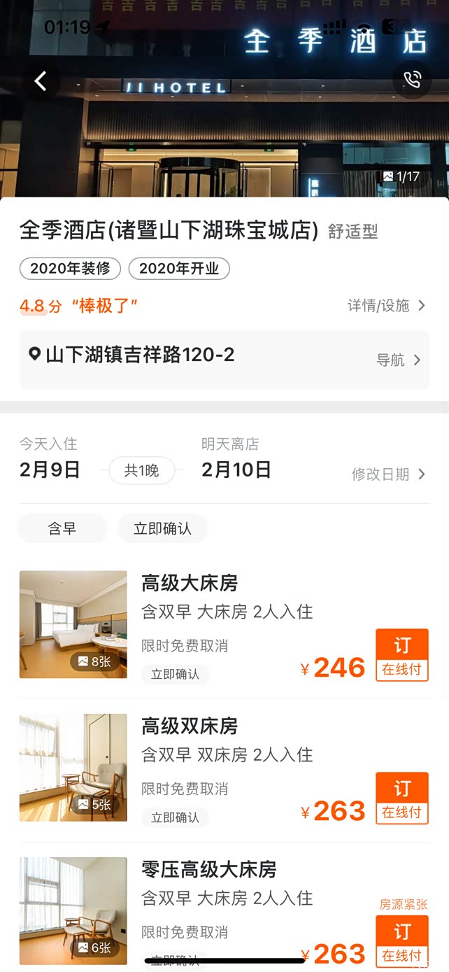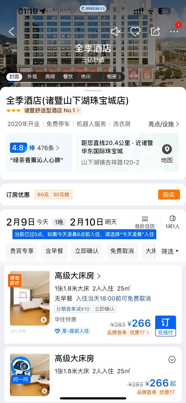 💰价格:而且极氪酒旅里面的价格明显会比直接在其他app上预定要更优惠,举个列子,全季酒店诸暨山下湖店,极氪上面包含早餐只要246元,而携程上面不包含早餐反而要266,可见极氪给车主谋了多少福利,在能用极分抵扣的基础上还给广大极氪车友争取了这么多的优惠,真的 香。