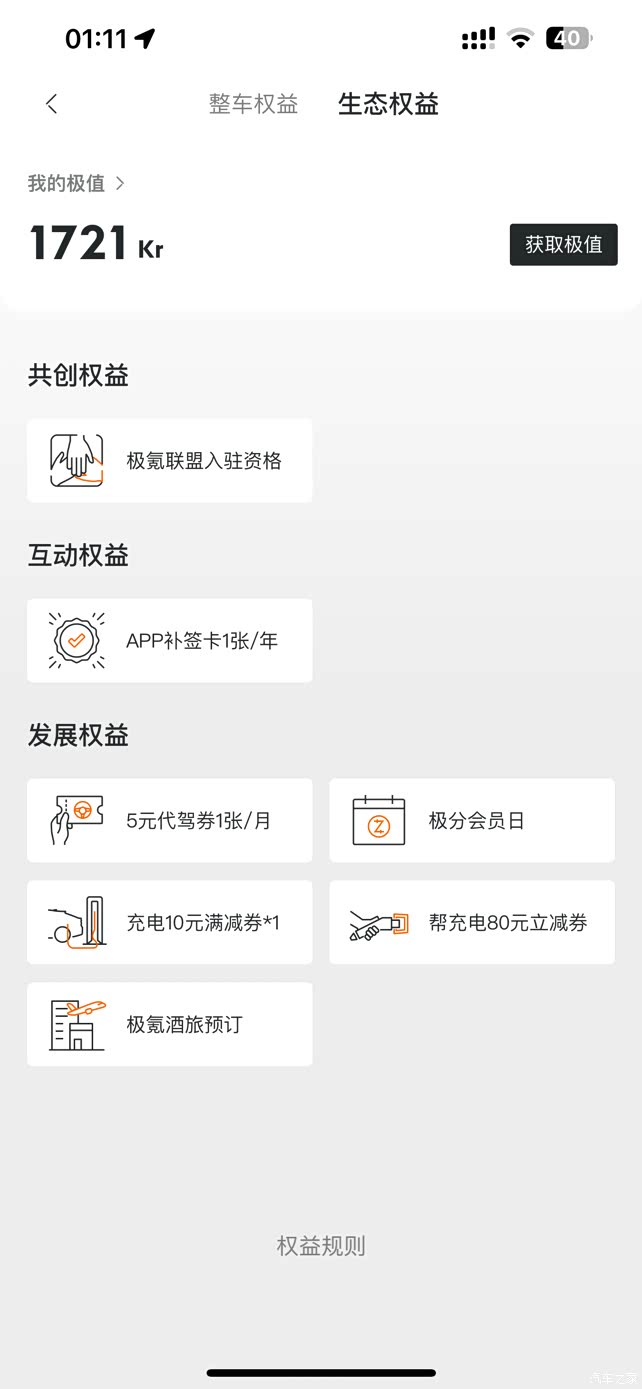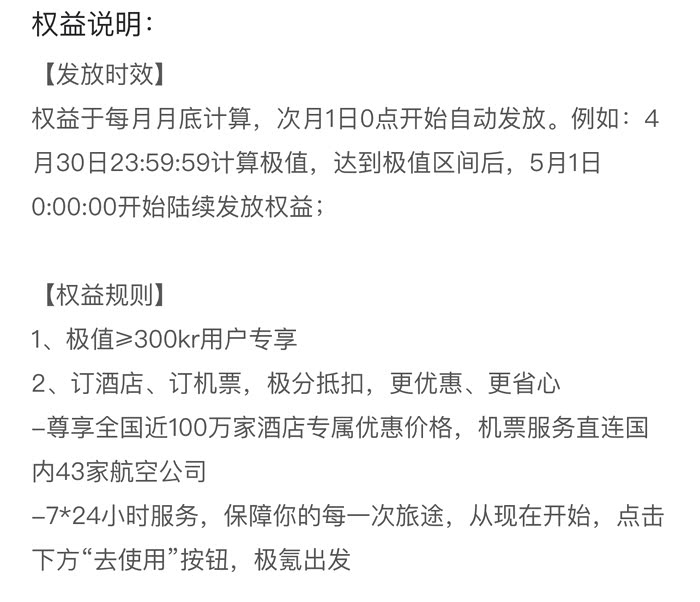 ??前提条件:极氪酒旅预定权益每个月发放一次,且需要极值大于等于300kr的用户才能使用,如果极值首次达到300kr以上的车友,发现自己没有这个权益就耐心等待下一个月。