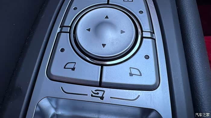 主驾车门上用来调节两侧后视镜切换的按钮,一起按就可以折叠收起后视镜,在过一些狭窄道路时可以防止磕碰到后视镜。