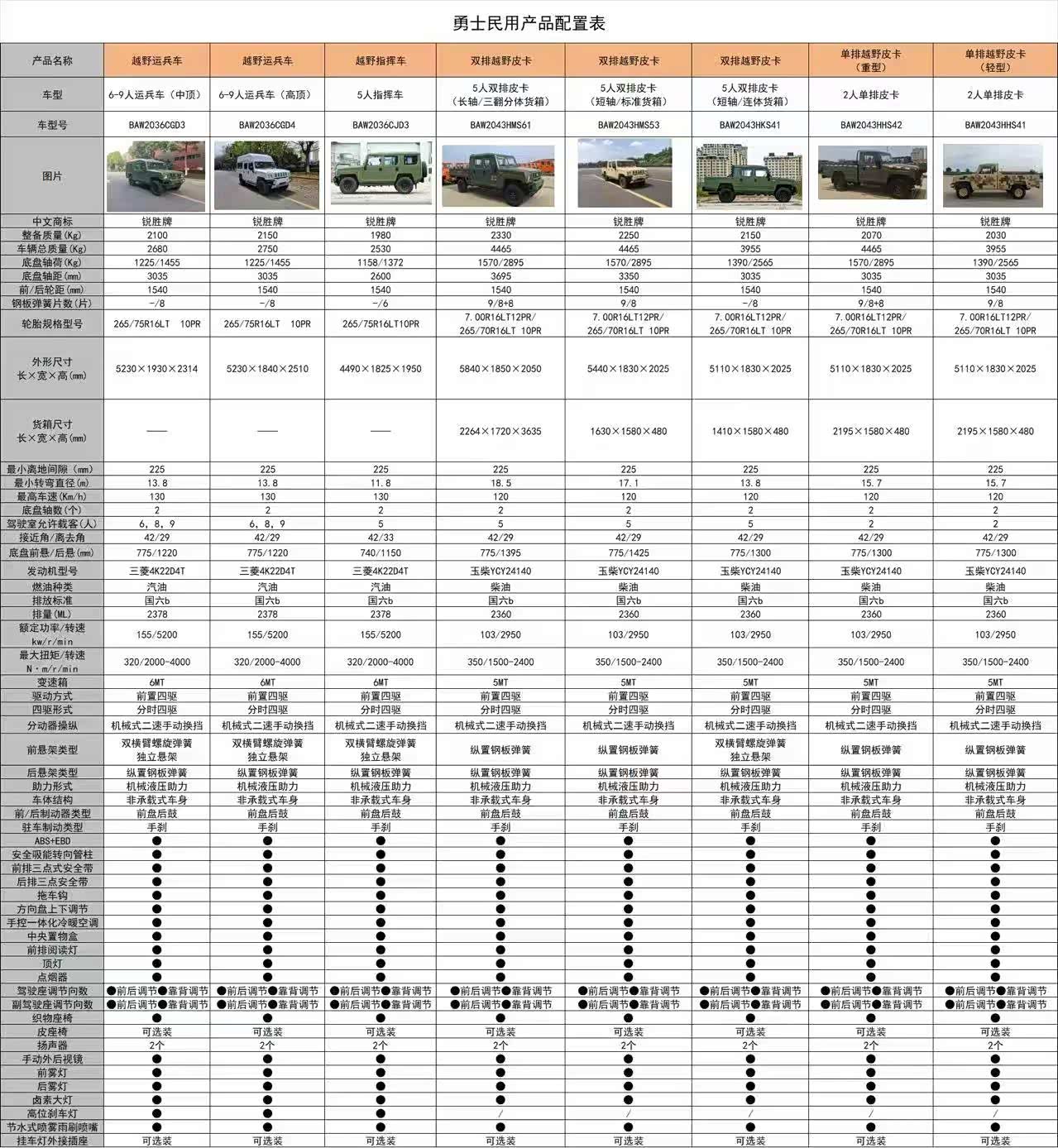 有些人一直想要新款的内饰啊,这个外观和内饰都拍了,那这个版本是额外加了防滚架的啊,放心,可以合法备案,我已经备案过了,后期的话,应该是不能加的,防滚架加1万,然后座椅的话是原本是织物的,加5000改成了全部的仿皮,这辆车全款下来16万出头,不算购置税,有关空间的话,可以说根本不用担心我这个是六座的版本哦,后备箱的话可以说白了,它是贯通的,但是空间肯定是非常大的啊,那唯一需要说的一点啊,就是第二排和第三排的座椅,它是基本坐不了人的,因为它不能调节,所以它的腿部空间会非常紧凑,可以说是硬塞进去的,所以说在不改座椅的情况下啊,只有右后方的一个座椅是可以用的啊,座椅的舒适度的话没什么问题,做工的话,我个人感觉应该是比老款要好一点的啊,毕竟它是青岛的新厂做的,然后有任何问题的话也可以问我,最后一张图呢,是一张参数图,是所有在售的民用款有的版本