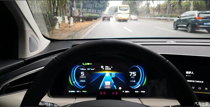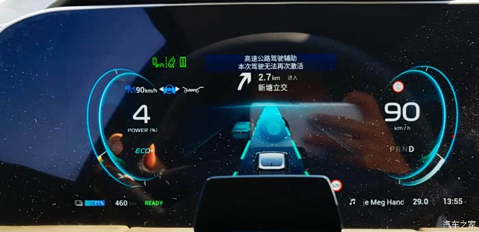 但是,我也发现了一个大问题:我发现没有车主们说的“高速辅助驾驶”的字样,也没有仪表盘两边的绿色光带,更没有长时间可以脱手脱脚的体验,手稍放松一会,就要求我掌控好方向盘