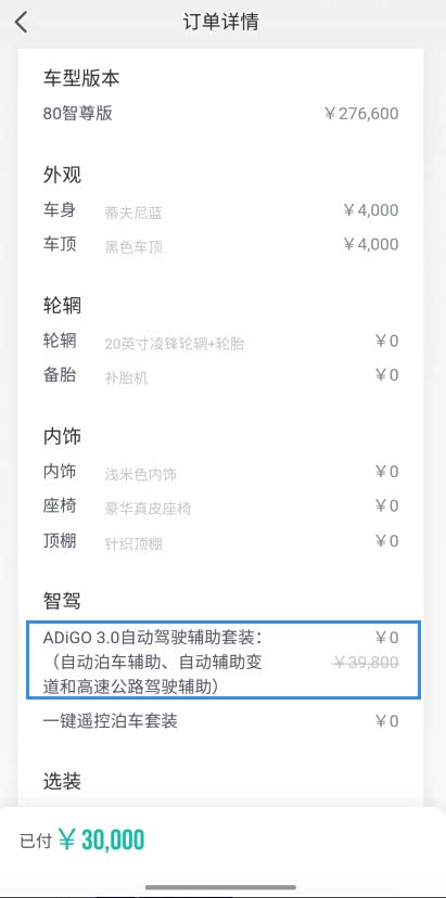 下载APP,交定金,专门选了LX80至尊版,对四驱,3.9秒零百加速没有特别的兴趣,但是对L3级别的辅助驾驶情有独钟,订车目标很明确,带L3级自动驾驶辅助的,按2020年的政策,必须办理保险的时间早于2020年12月31日才可以享受广州的1万元购车补贴,但为了自己设定的“小目标”,4S店销售阿璇说可能性不大的情况,我还是毅然决然没有选店里L2.5 银色的现车。我的车,加了8000,配了蒂芙尼蓝以及黑顶,赠送价值39800 L3自动驾驶套装的LX ,最终在2021年元旦假期后,1月6日拿到了钥匙。