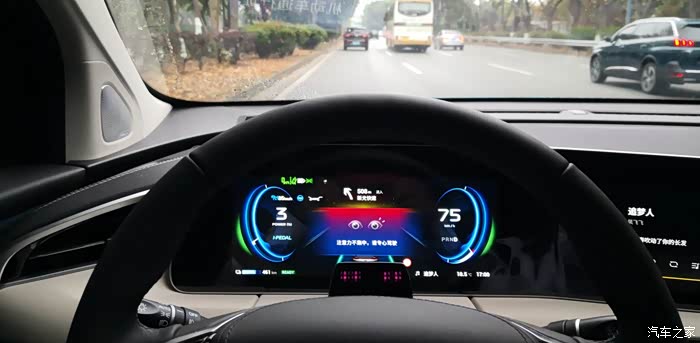 但是新光快速、科韵路段会出现行驶中高速辅助中断的情况,毕竟不是高速路可以长时间脱手脱脚驾驶,要在仪表盘提醒后及时接管,给方向盘一个力矩,或者用力捏一下方向盘(是电容的)。